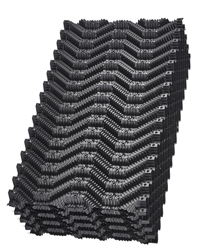 該填料結構設計合理,親水面積大,熱力、阻力綜合性能好,水膜分布均勻,通風阻力小,承載能力強,單位體積輕,冷卻效果好等特點,主要用于工業(yè)逆流冷卻塔,電廠雙曲線水泥冷卻塔,適應溫度68℃~零下35℃,阻燃性能好,氧指數(shù)大于等于40℃.