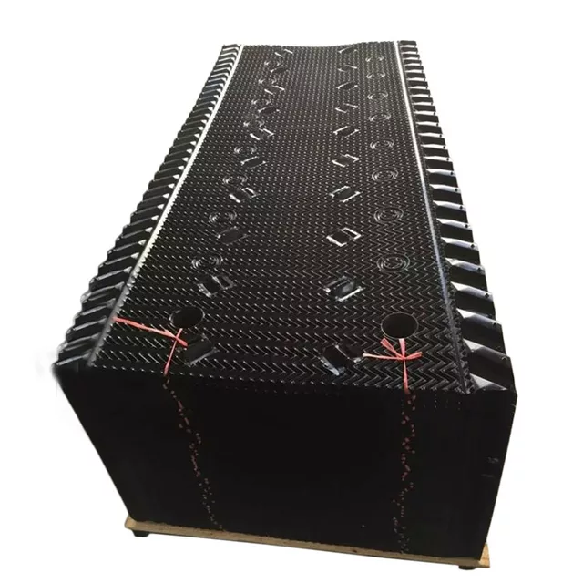 填充物由0.4毫米(1/64英寸)厚的PVC膜真空成型。 填充板配置在進(jìn)氣和出口部分都包含傾斜的凹槽,是高效的濕式平臺(tái)介質(zhì)。 蜂窩狀進(jìn)氣百葉窗部分使氣流阻力最小,并防止異物進(jìn)入。 填充板出口部分中的傾斜凹槽用作主要的除水器,以減少通過廢氣流逸出的液滴。 消除一次漂移或確保漂移損失小于循環(huán)水流量的0.005%。 具有連續(xù)三角形圖案的濕甲板介質(zhì)經(jīng)過專門設(shè)計(jì),可提供最大程度的空氣/水接觸和較低的阻力,從而確保高效的熱傳遞。